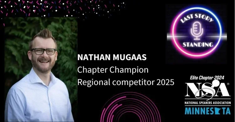 In the spring of 2025 I was honored to be chosen as the National Speakers Association Minnesota Chapter Last Story Standing Champion. I love telling funny, heartfelt stories with a purpose and I feel fortunate to be recognized by my peers and mentors in this way.